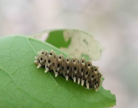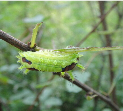 發(fā)生規(guī)律:一年發(fā)生4代,以蛹在淺土中越冬。4月中旬成蟲羽化,卵單產(chǎn)于葉片正面,成片狀。5月上旬至10月上旬均有幼蟲為害,世代重疊。一般以5月上中旬,6月中下旬,8月中下旬,9月上中旬為害較重。干旱少雨時期為害重,連陰多雨時期為害輕,幼蟲受驚后綴絲下垂,故又名“吊死鬼”。