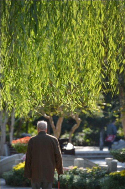 “菊風·詩韻”主題園景前駐足觀賞